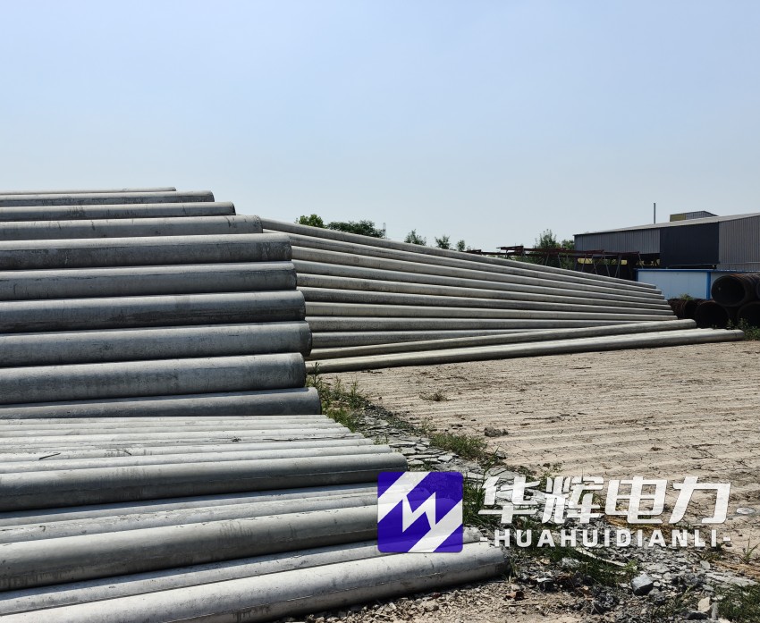 8米武安水泥电线杆通常采用钢筋混凝土离心成型工艺,杆体呈锥形结构,梢径150mm-190mm,根径230mm-270mm,壁厚40mm-50mm。根据标准GB/T4623-2014,产品混凝土强度等级不低于C40,主筋采用HRB400级钢筋,配筋量根据抗裂弯矩要求设计,标准抗裂弯矩可达12-18kN·m,破坏弯矩不小于24kN·m。杆体重量约0.5-0.8吨,运输安装便捷,适合人工或小型机械施工。
